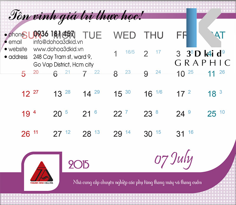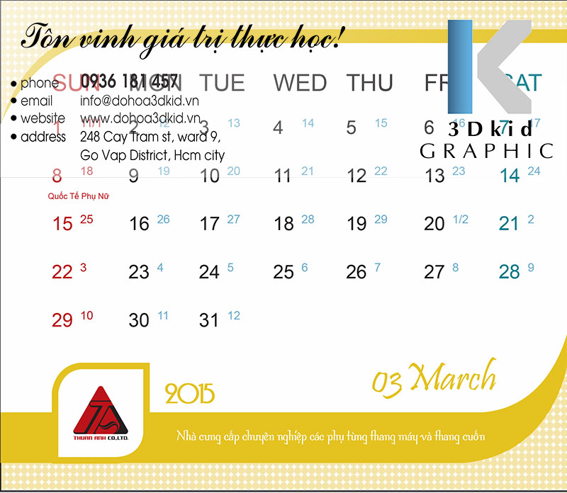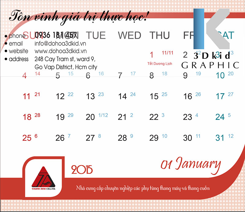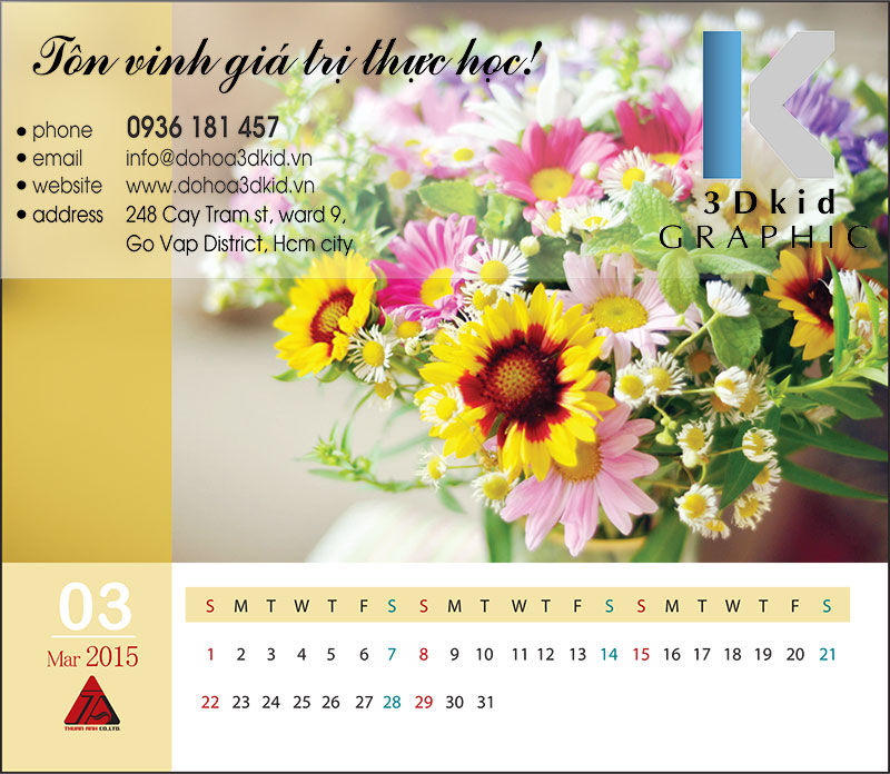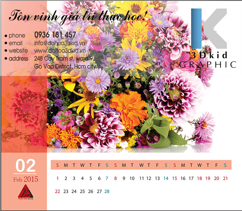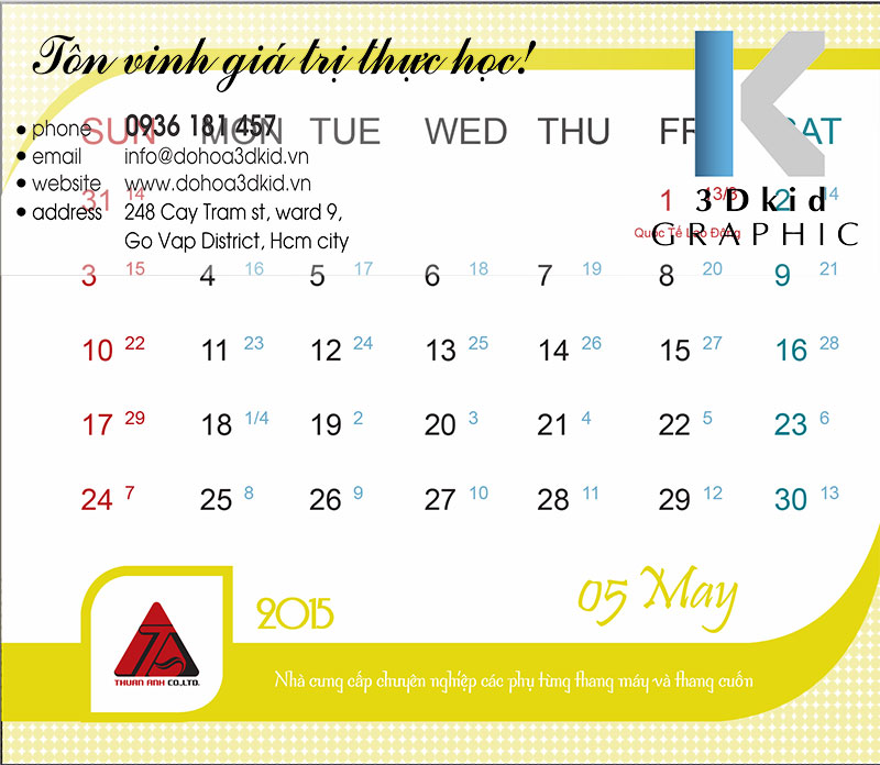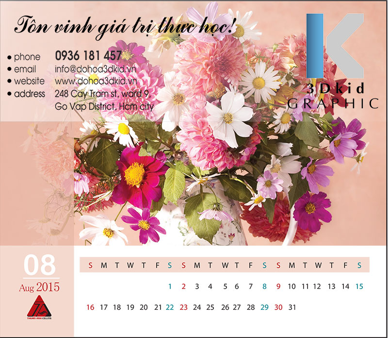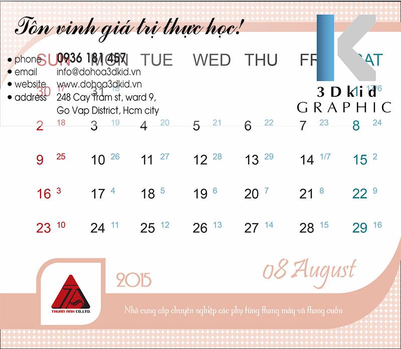 - Dự án hoàn thành 2015: Lịch để bàn (công ty Keng, Gò Vấp)