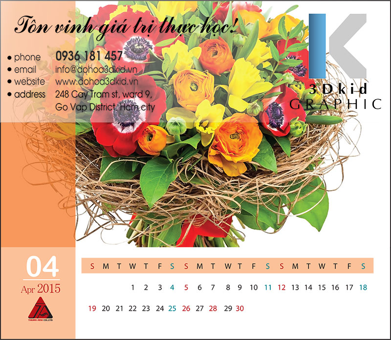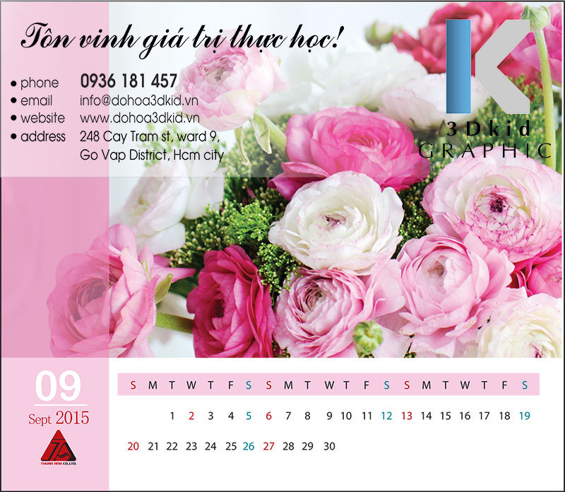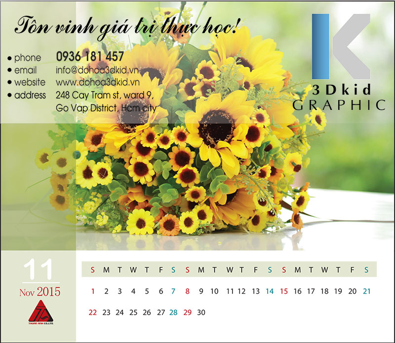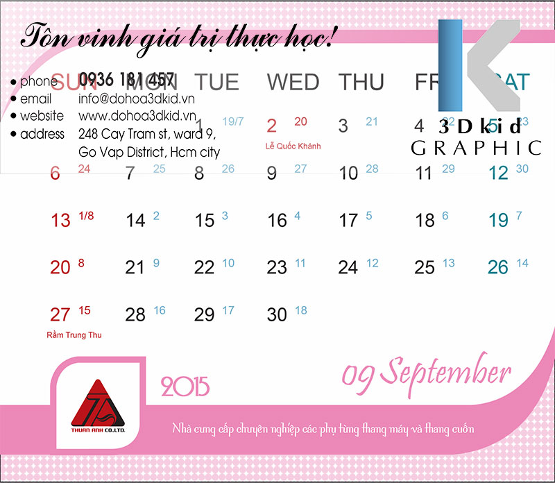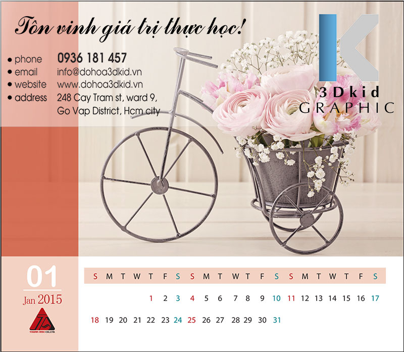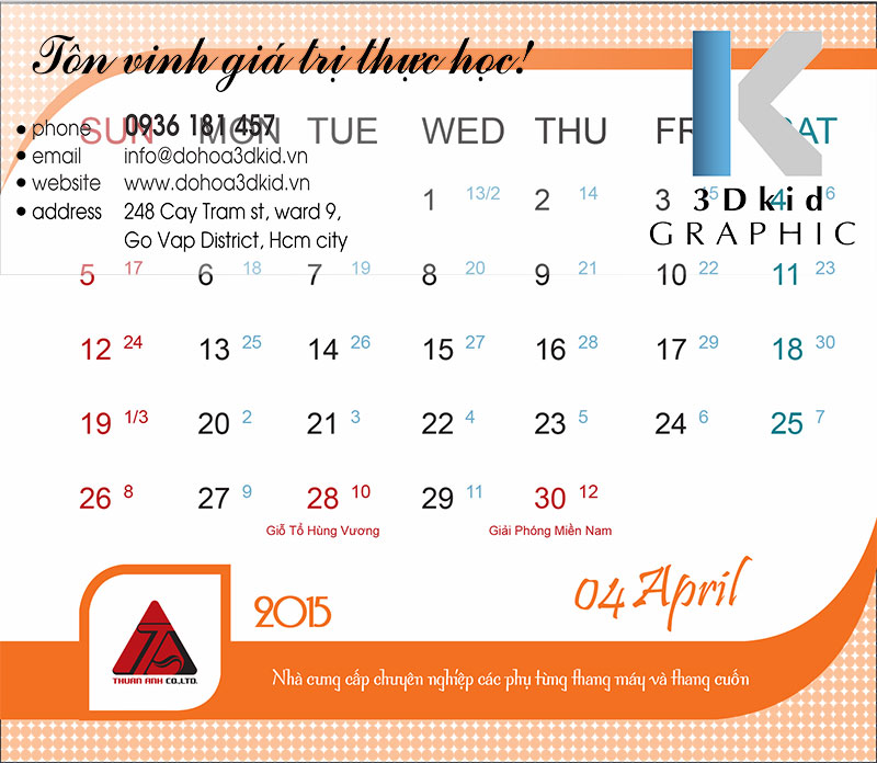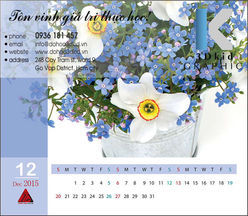 - Dự án hoàn thành 2015: Lịch để bàn (công ty Keng, Gò Vấp)