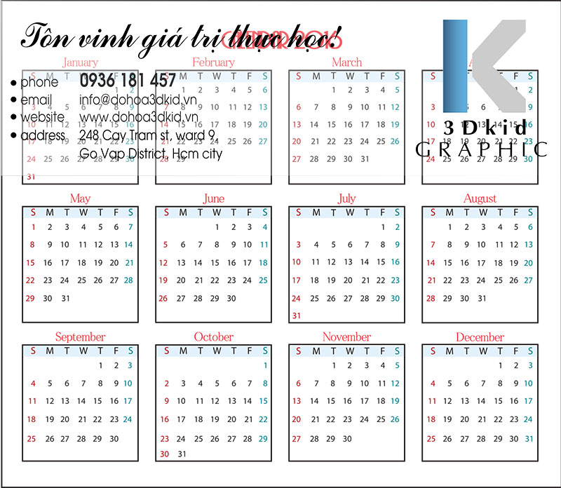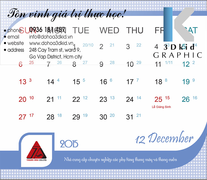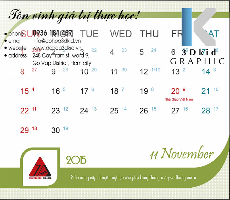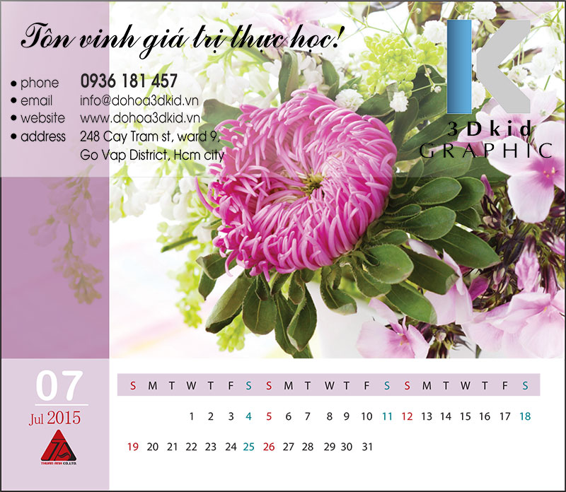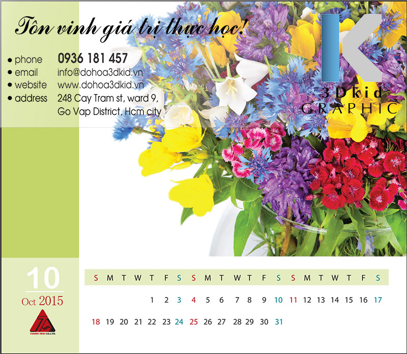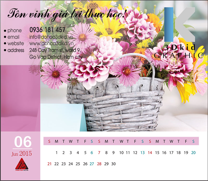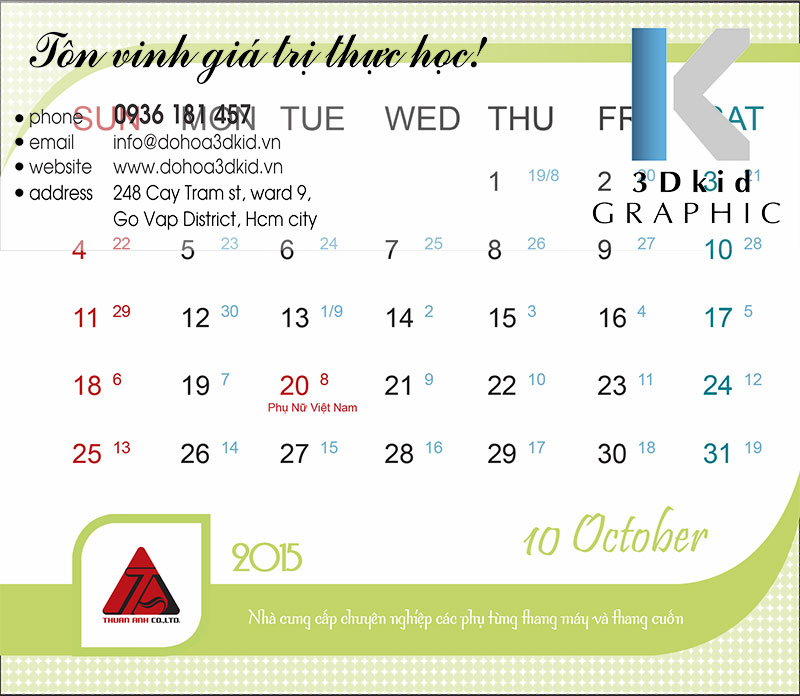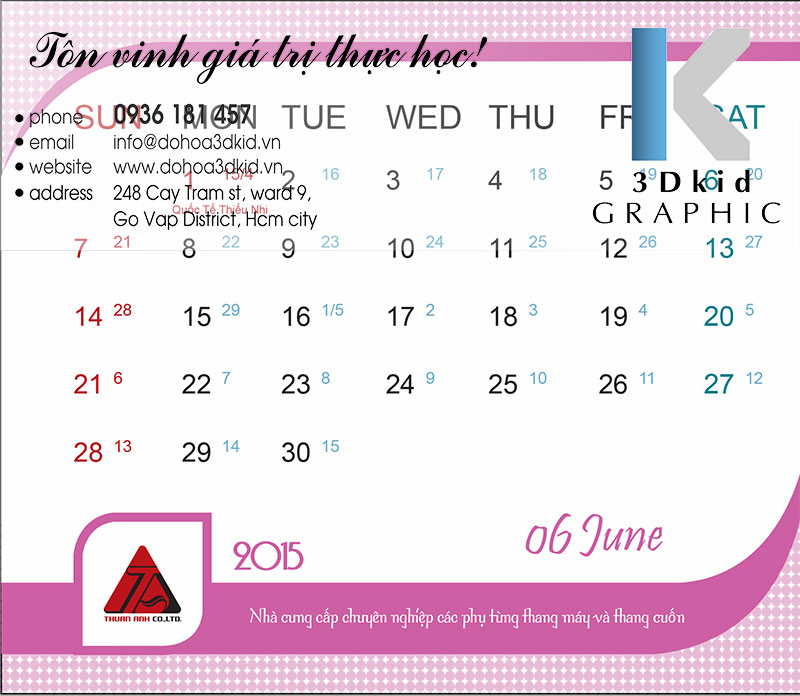 - Dự án hoàn thành 2015: Lịch để bàn (công ty Keng, Gò Vấp)
