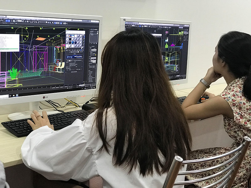 Bạn học viên đang chăm chỉ thực hành vẽ Phối cảnh trong lớp học 3dmax
