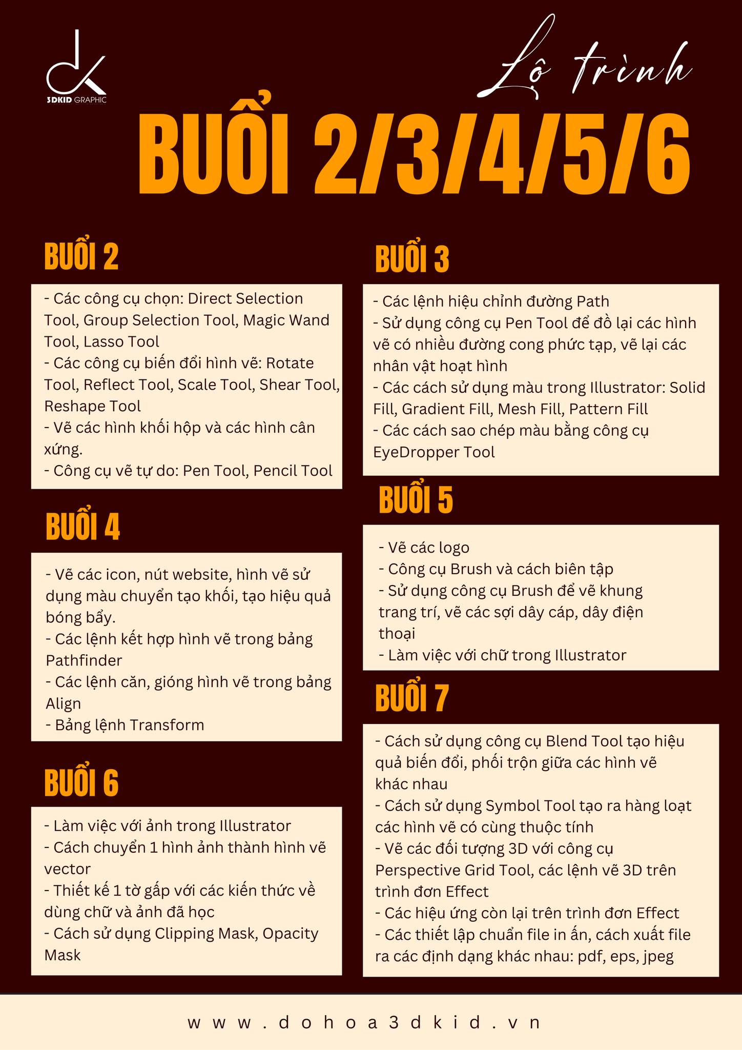 Chương trình học tại ĐỒ HỌA 3DKID được thiết kế tinh gọn, tập trung vào kiến thức cốt lõi và thực hành liên tục, giúp bạn nhanh chóng làm chủ Illustrator chỉ sau 10 buổi: